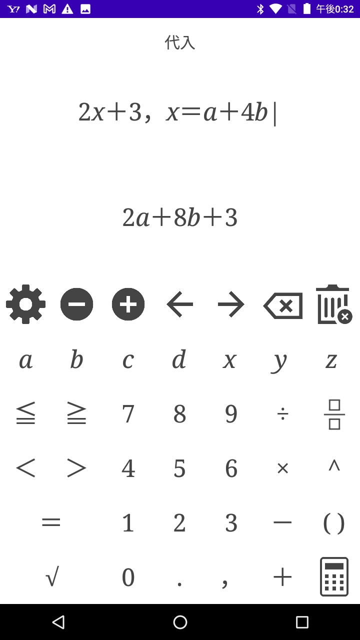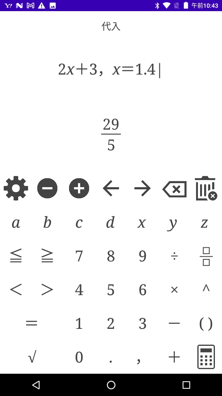 例 2x+3にx=1.4を代入する 入力式 「 2x+3,x=1.4 」戻る 例 2x+3にx=a+4bを代入する 入力式 「 2x+3,x=a+4b 」